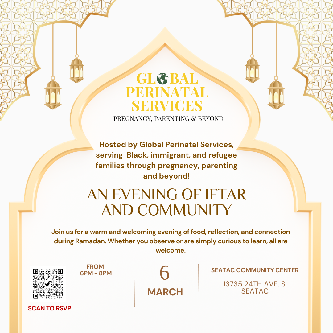 Join us on March 6 at the SeaTac Community Center for our annual Community Iftar ,a warm and welcoming evening rooted in gathering and shared purpose.